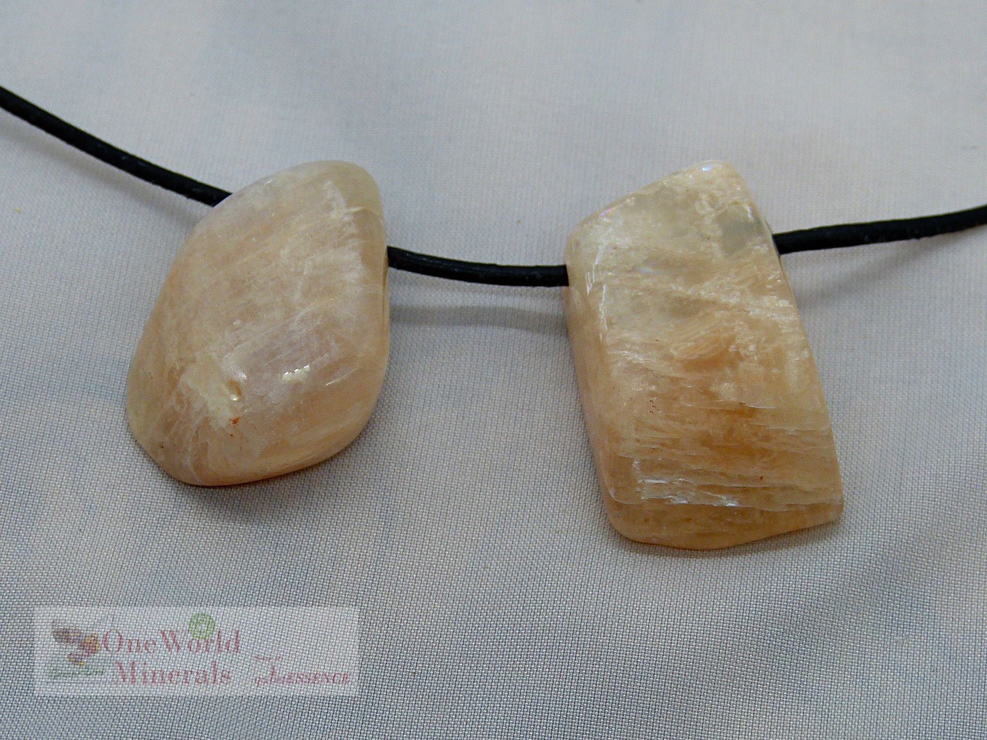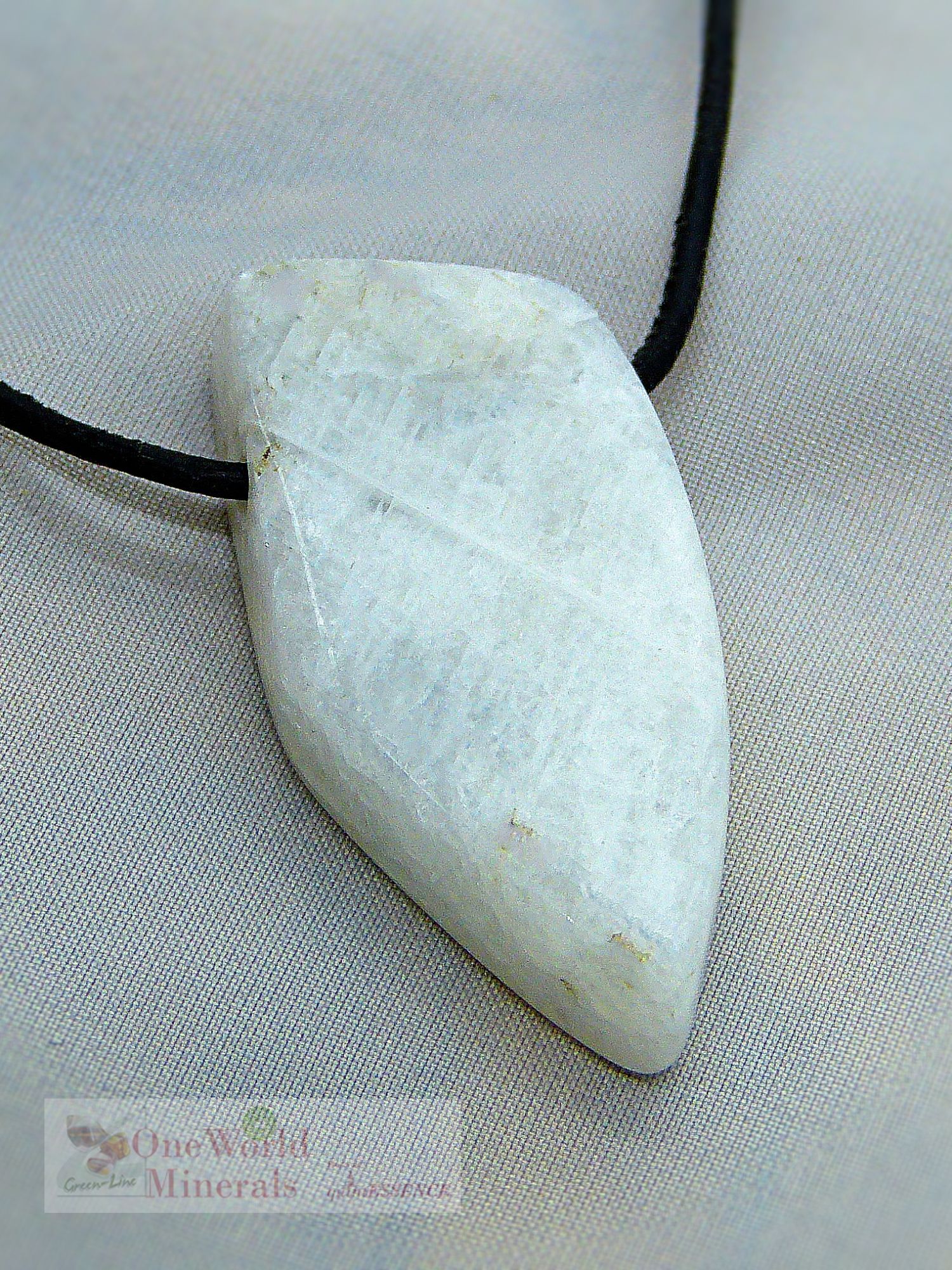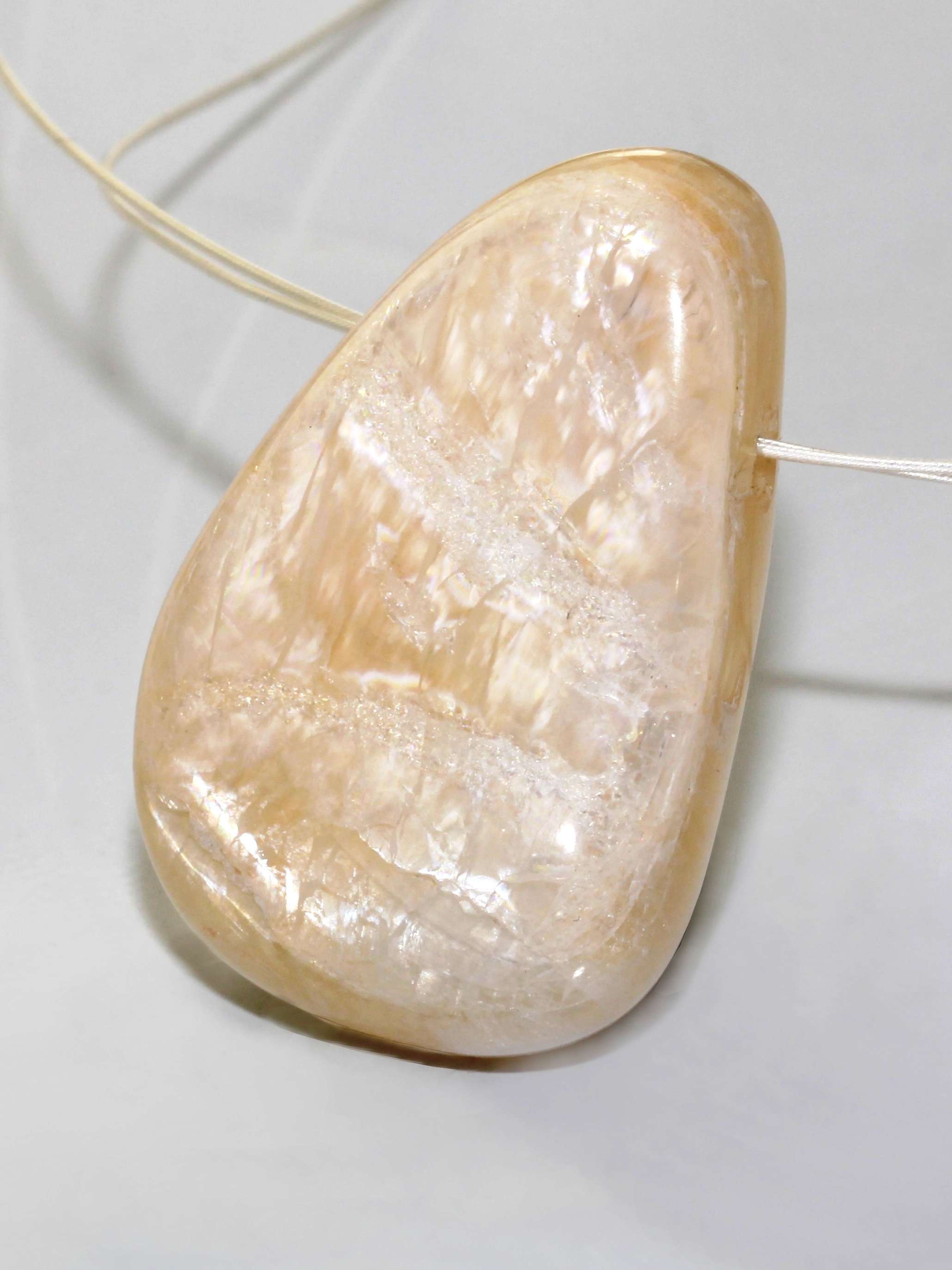 Mondstein (Trommelstein, gebohrt), Herkunft Tansania, verarbeitet in unserer Werkstatt in Deutschland.
