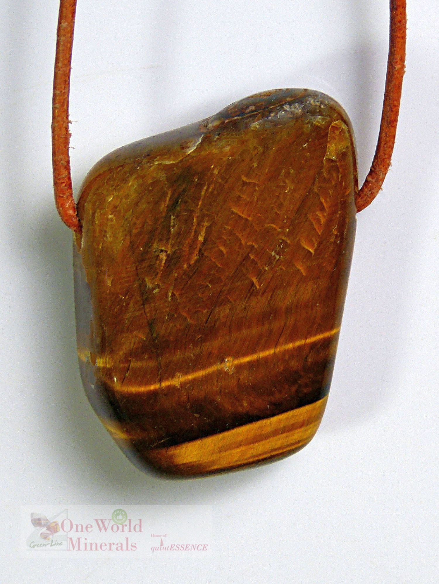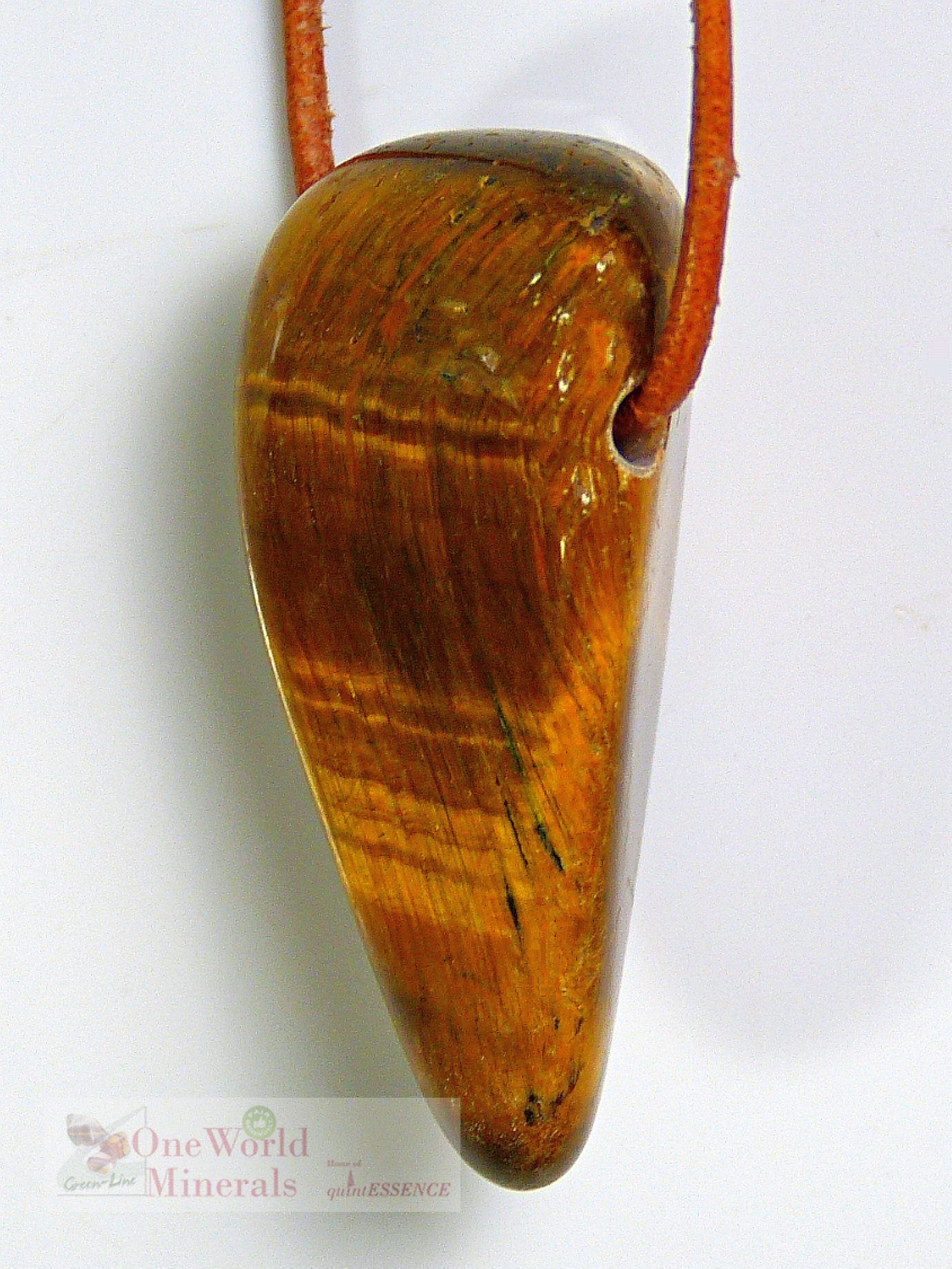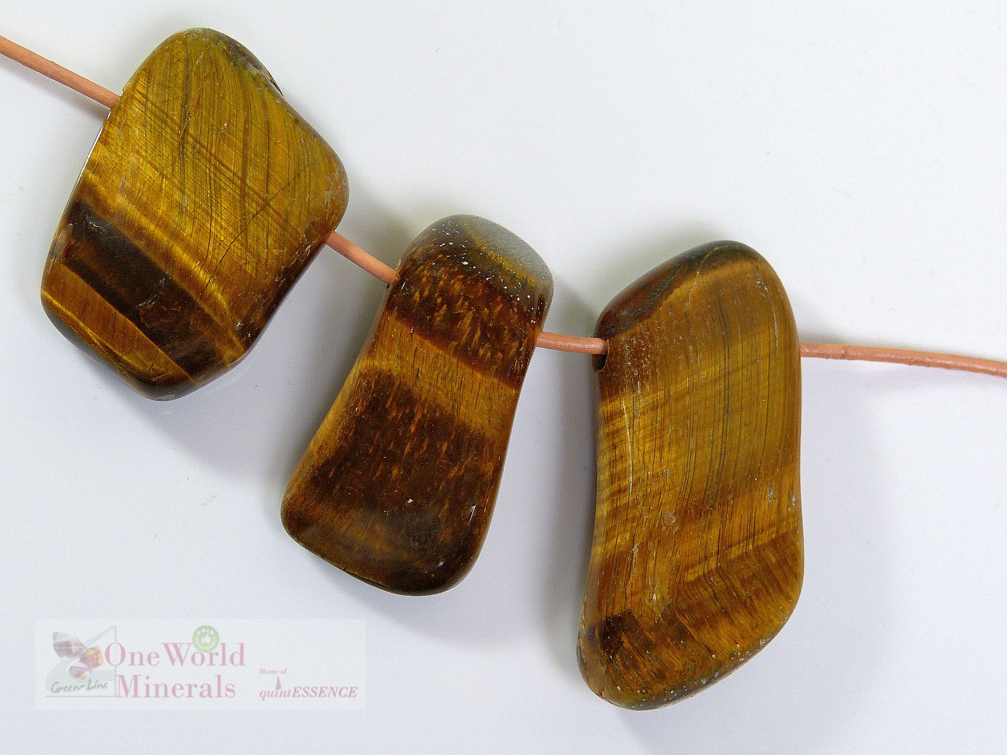 Tigerauge/Falkenauge (Trommelstein, gebohrt), HerkunftSüd-Afrika, verarbeitet in unserer Werkstatt in Deutschland.