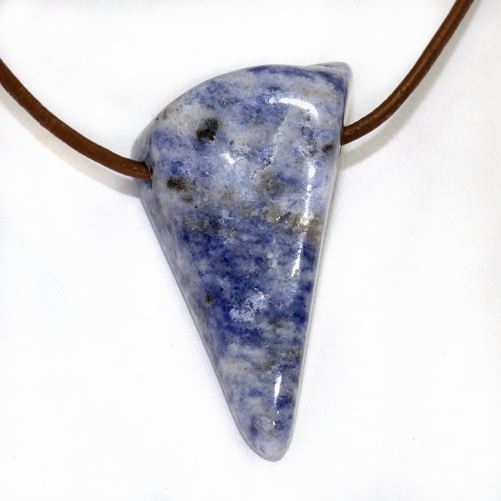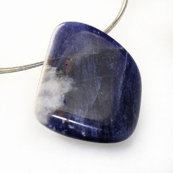 Sodalith (Trommelstein, gebohrt), Herkunft Madagaskar, verarbeitet in unserer Werkstatt in Deutschland.
