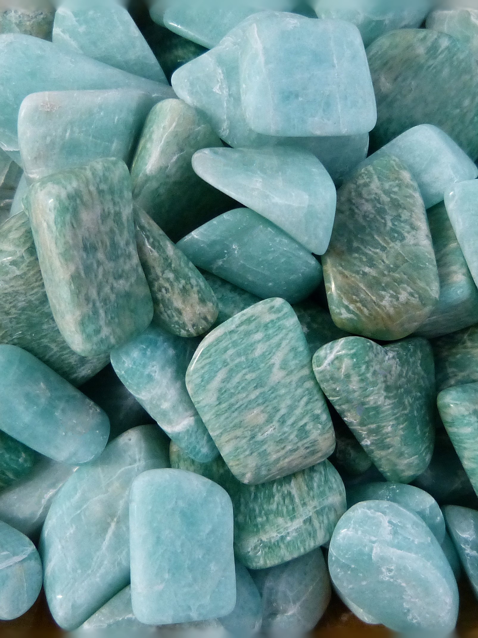 Amazonit Trommelstein, Herkunft Madagskar, verarbeitet in Deutschland.