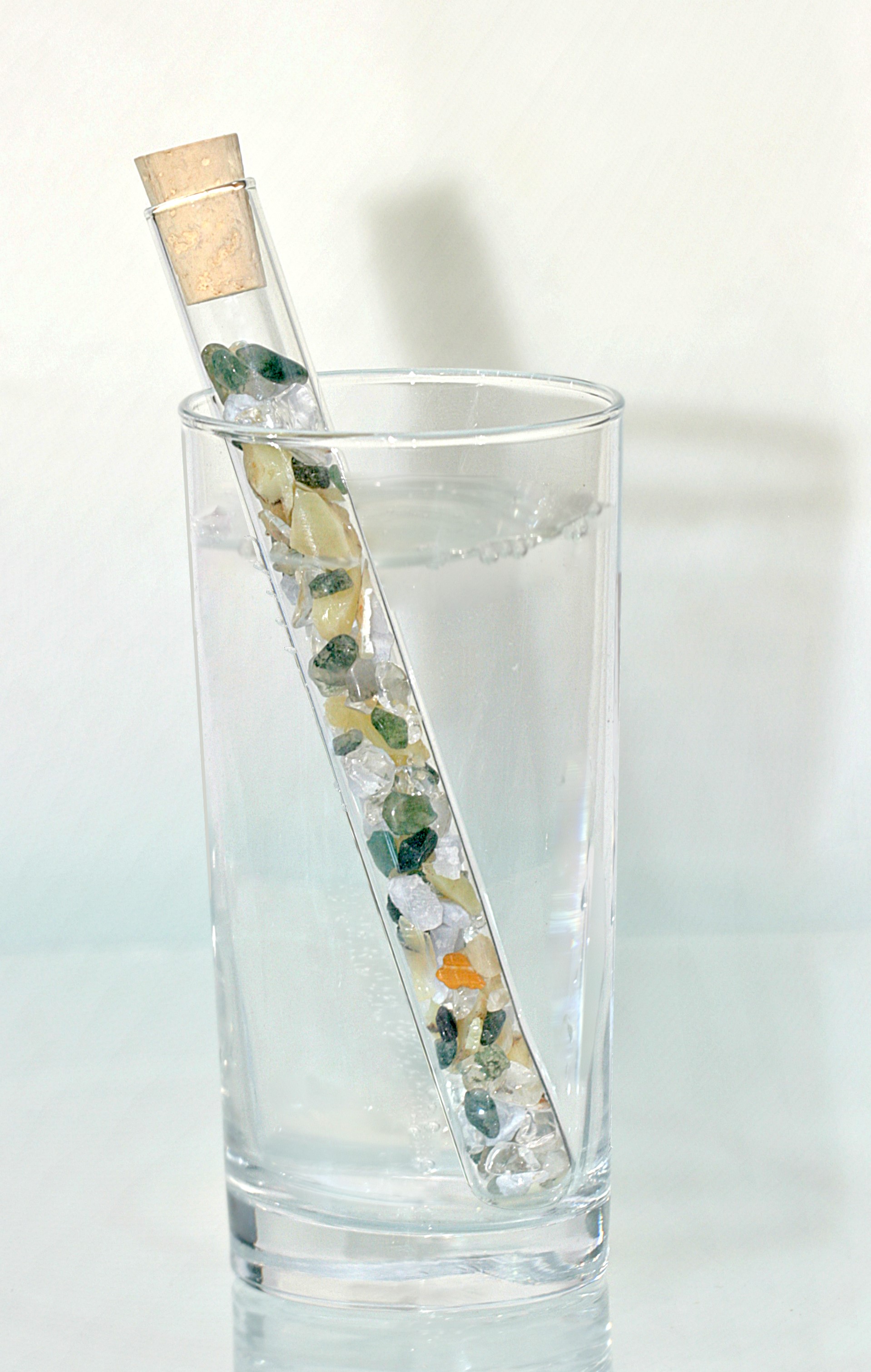 Stellen Sie einen Stab in ein mit stillem Wasser gefülltes Glas und genießen Sie schon nach kurzer Zeit frisches Edelsteinwasser.