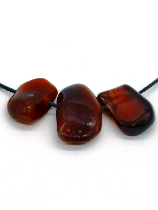 Sarder (Trommelstein, gebohrt), Herkunft Boswana, verarbeitet in unserer Werkstatt in Deutschland.