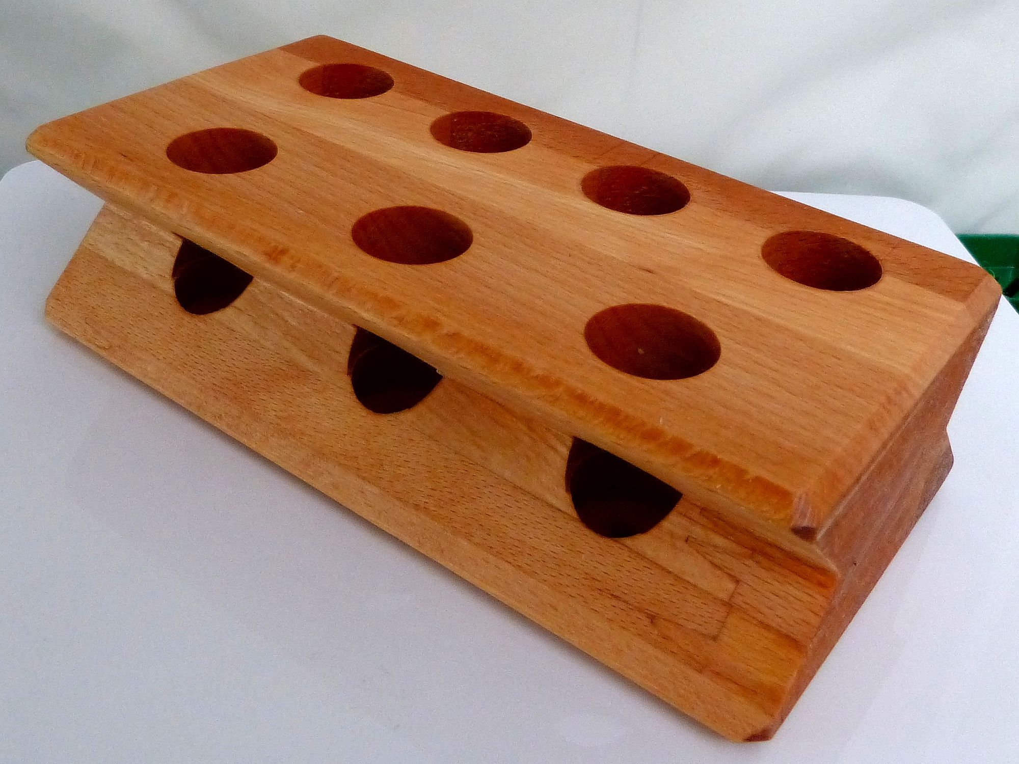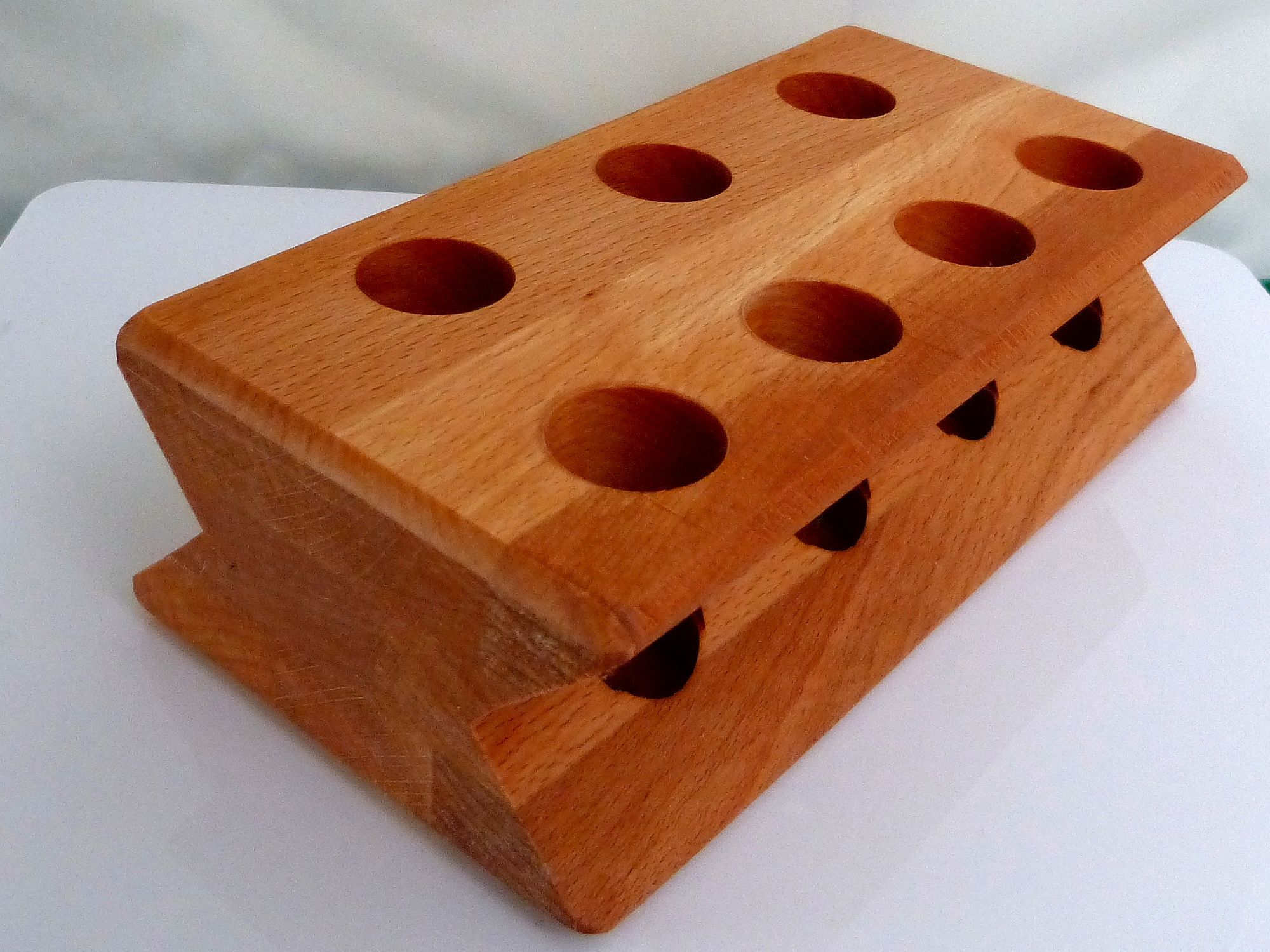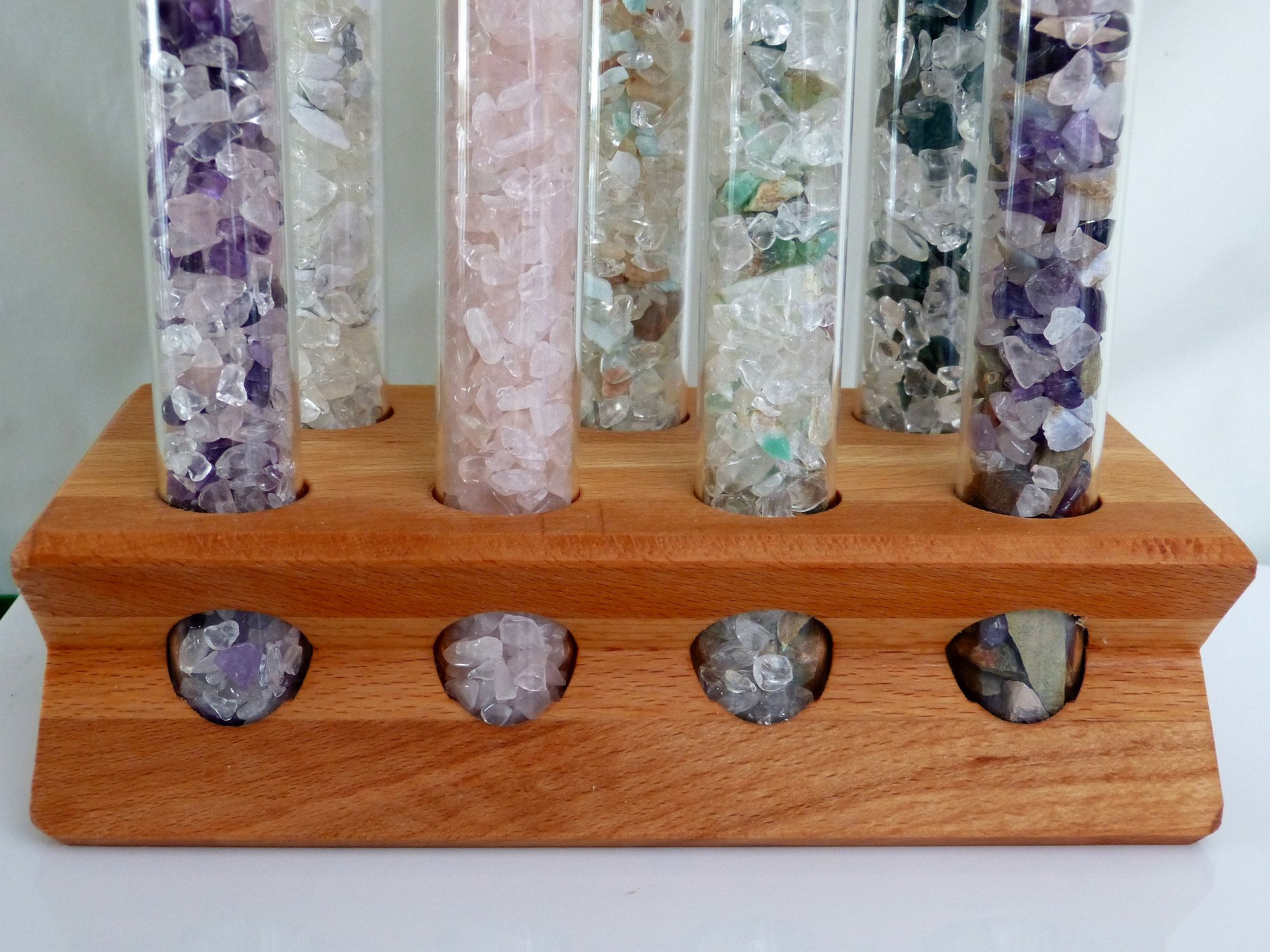 Die Ständer für unsere Wasserstäbe: Handarbeit, Kirsch-Holz, geölt. Für 7 quintESSENCE-Edelsteinstäbe (nicht für Akut! & toGo).