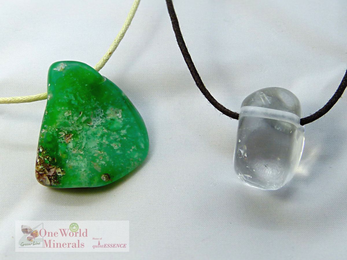 Chrysopras ist der Stein für Entschlackung und Konfliktlösung, Bergkristall fördert den Energiefluss.*