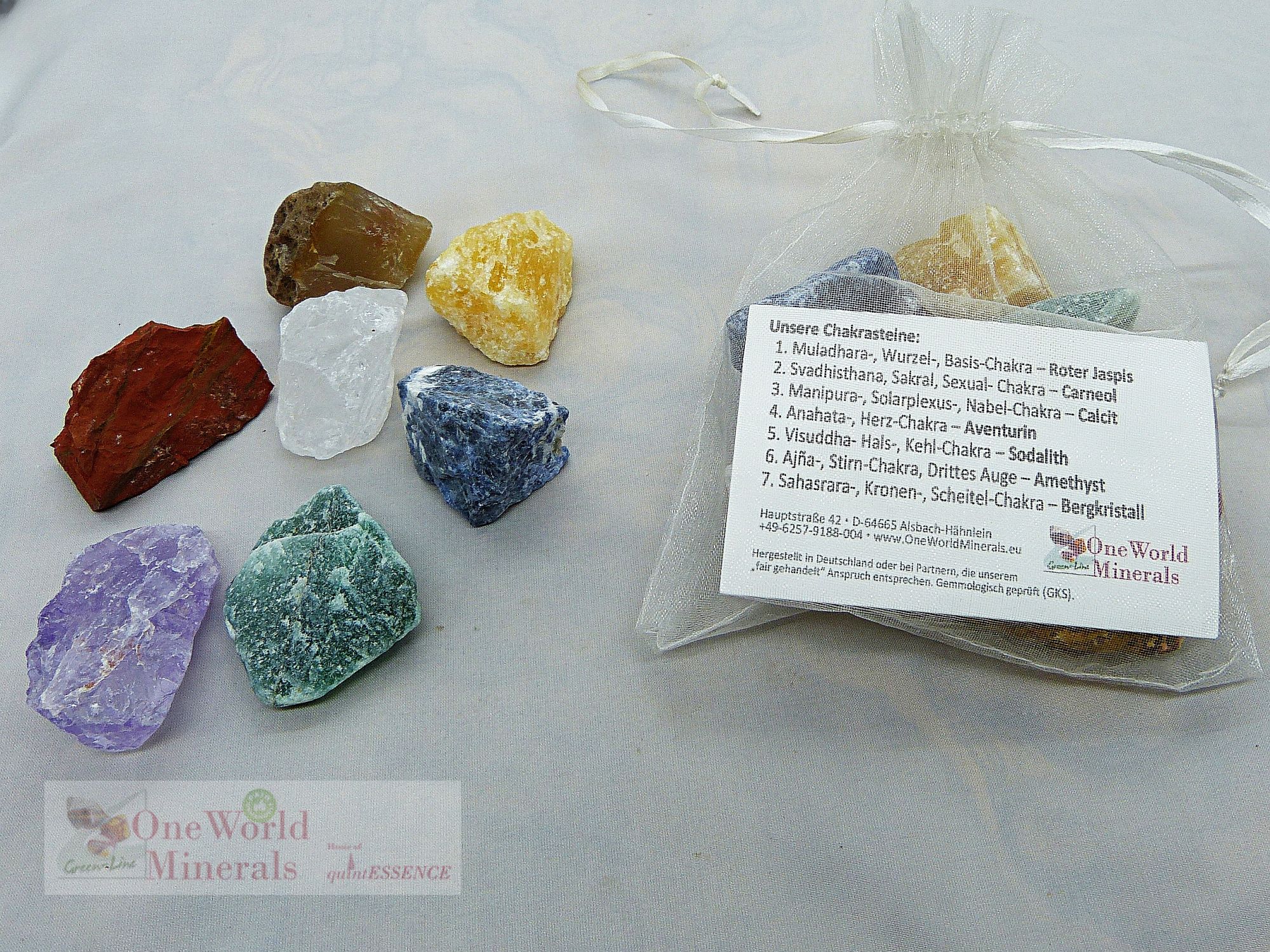 Sie erhalten eine Packung im Organzabeutel. Wir haben uns bewußt für Rohsteine entschieden in diesem Set.