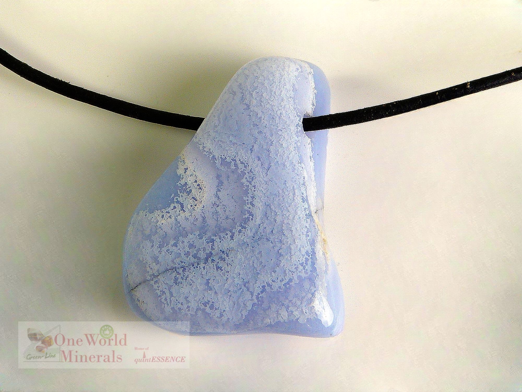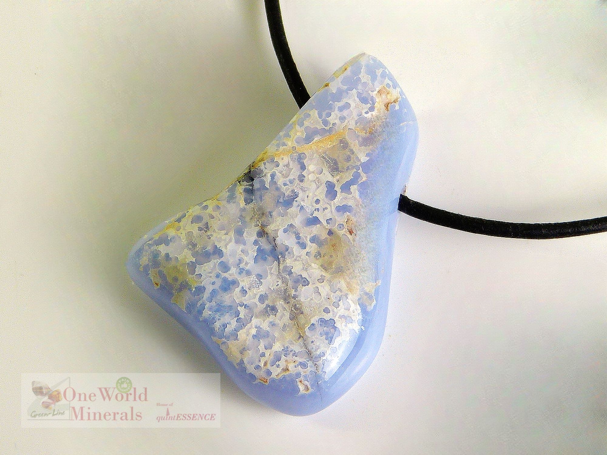 Der schöne, flache Chalcedonanhänger kommt aus Namibia.