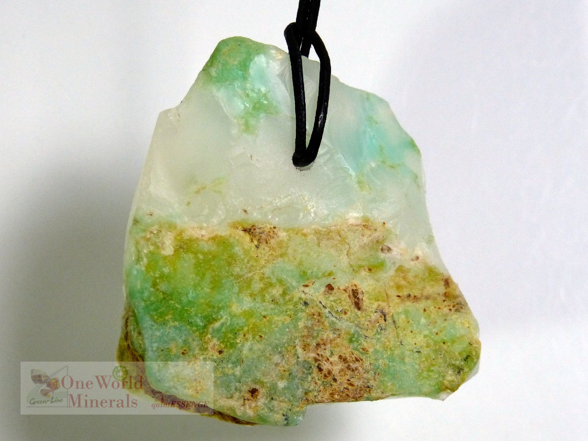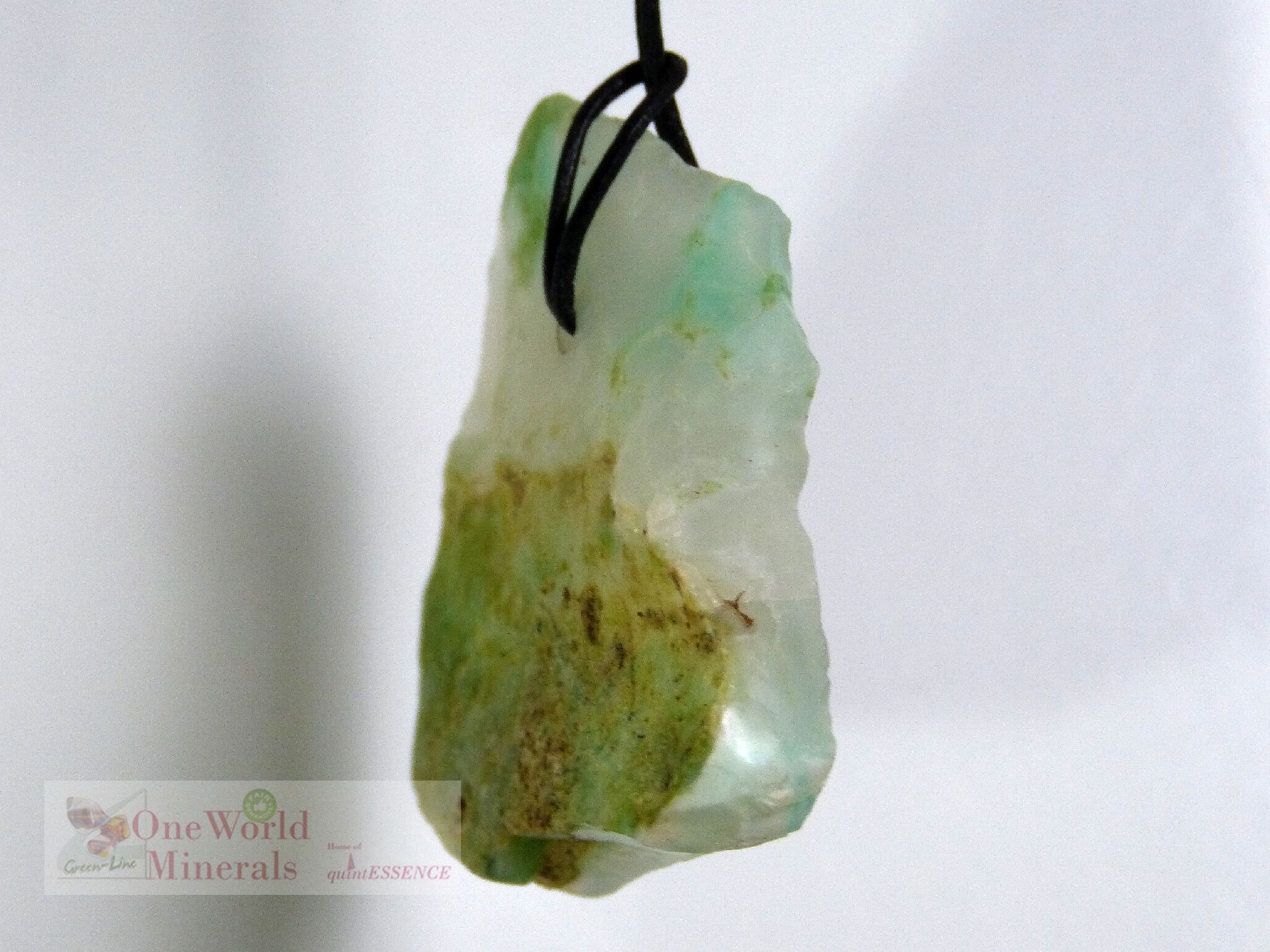 Großer, dünner und teilweise transparentar Chrysopras Anhänger, ein besonderes Unikat aus Australien. Die Vorderseite ist handgeschliffen, die Rückseite entgratet.