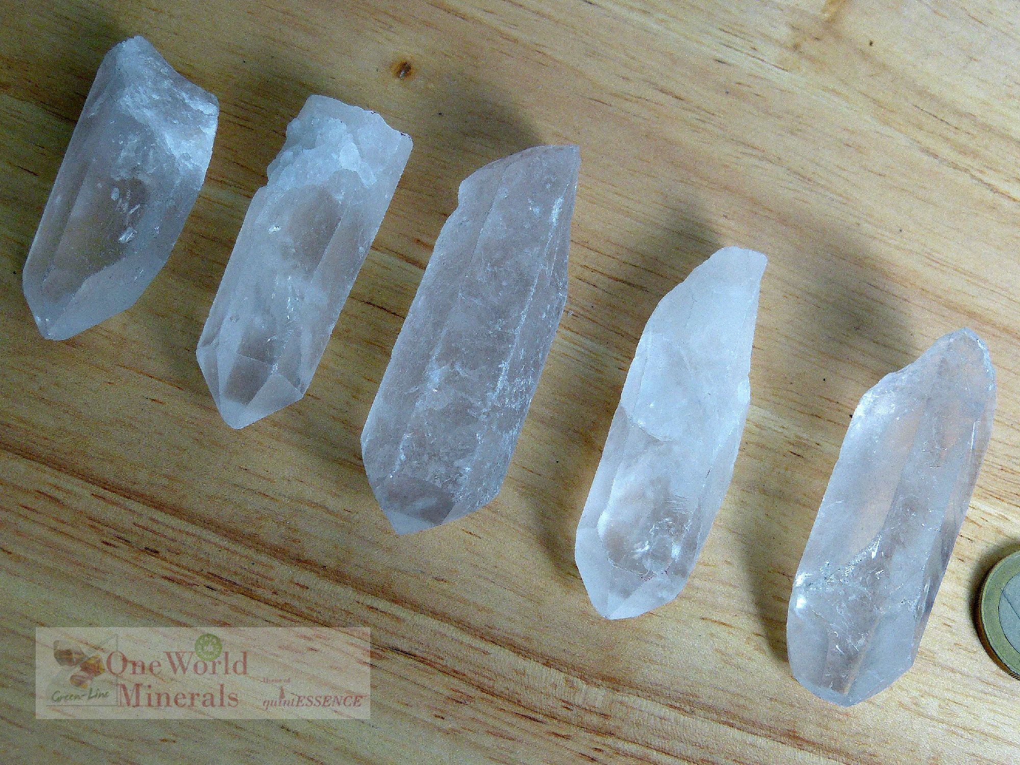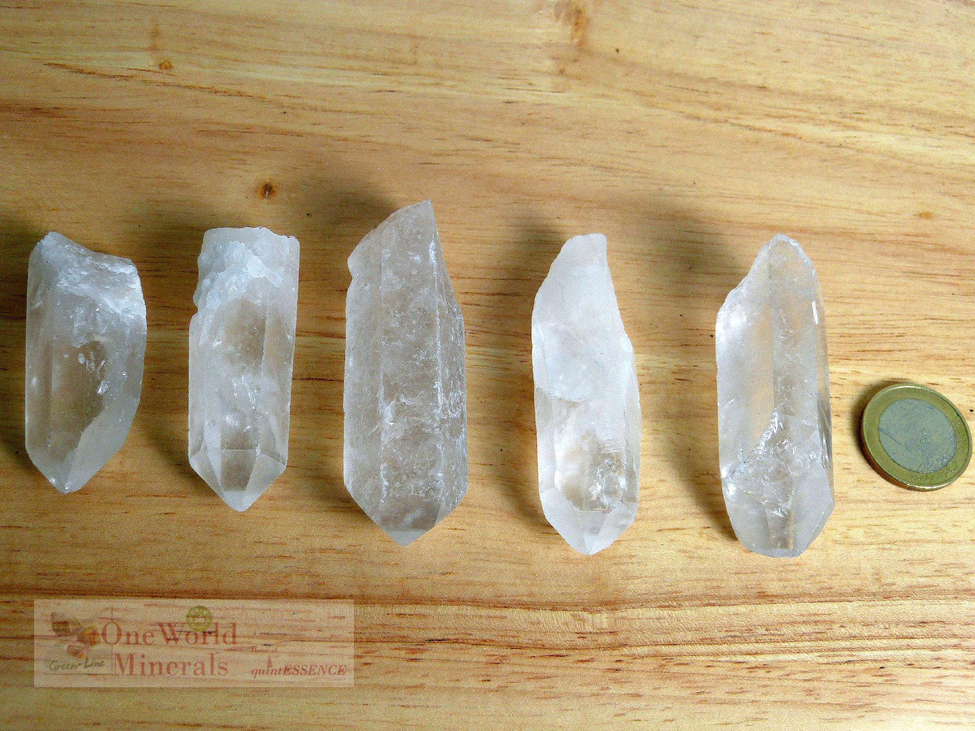 5 schöne Bergkristallspitzen, ca. 5,5 -7 cm groß, gesamt 186 g.