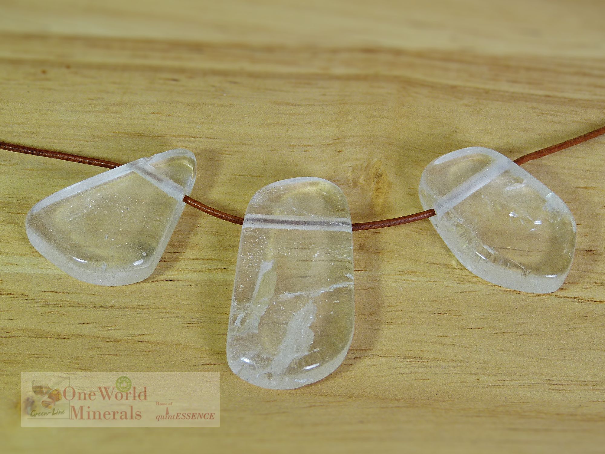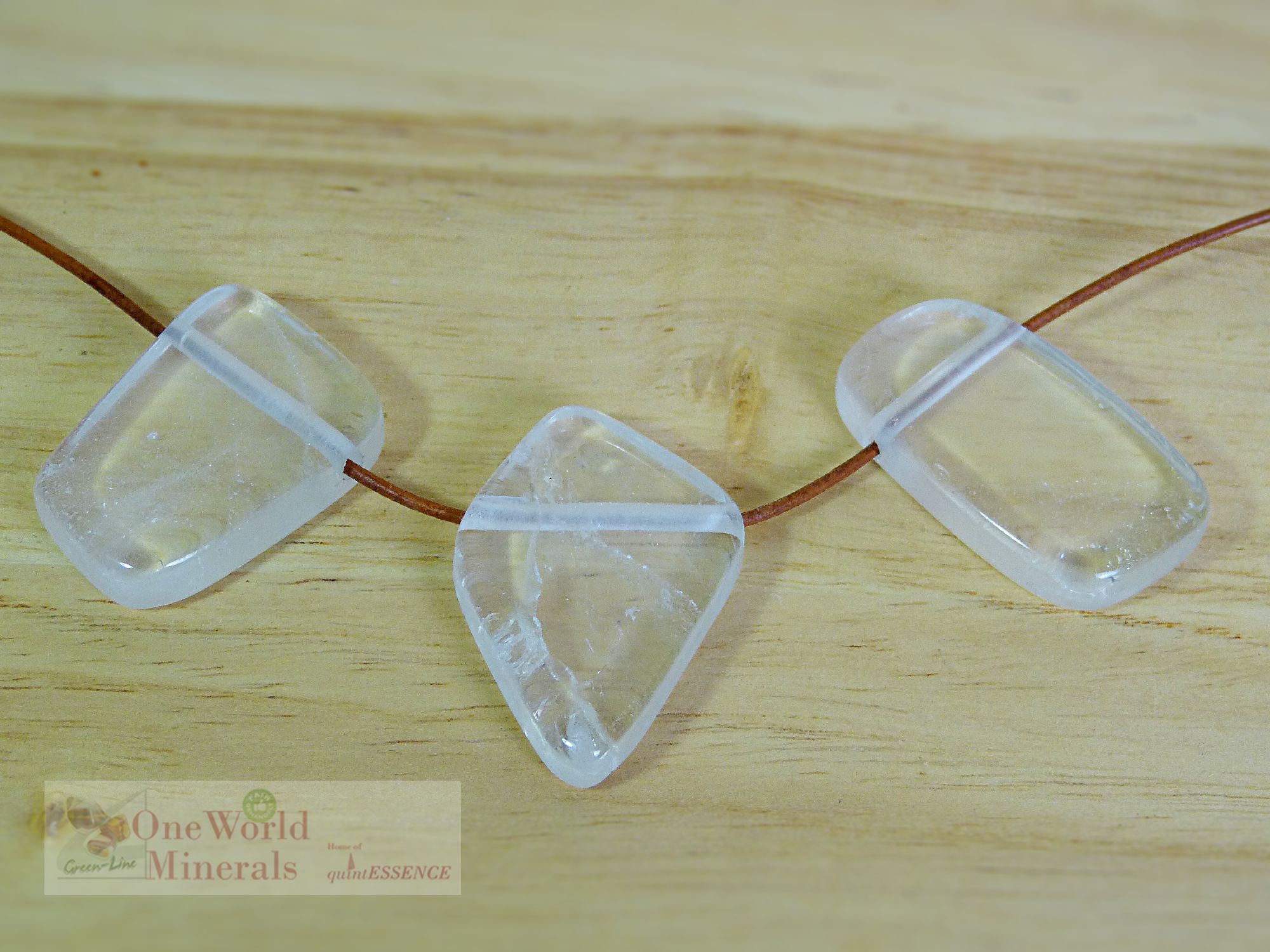 Diese Bergkristall Schmuck-Anhänger werden per Hand vorgeschnitten und geschliffen. Die Politur erledigen dann unsere Maschinen.