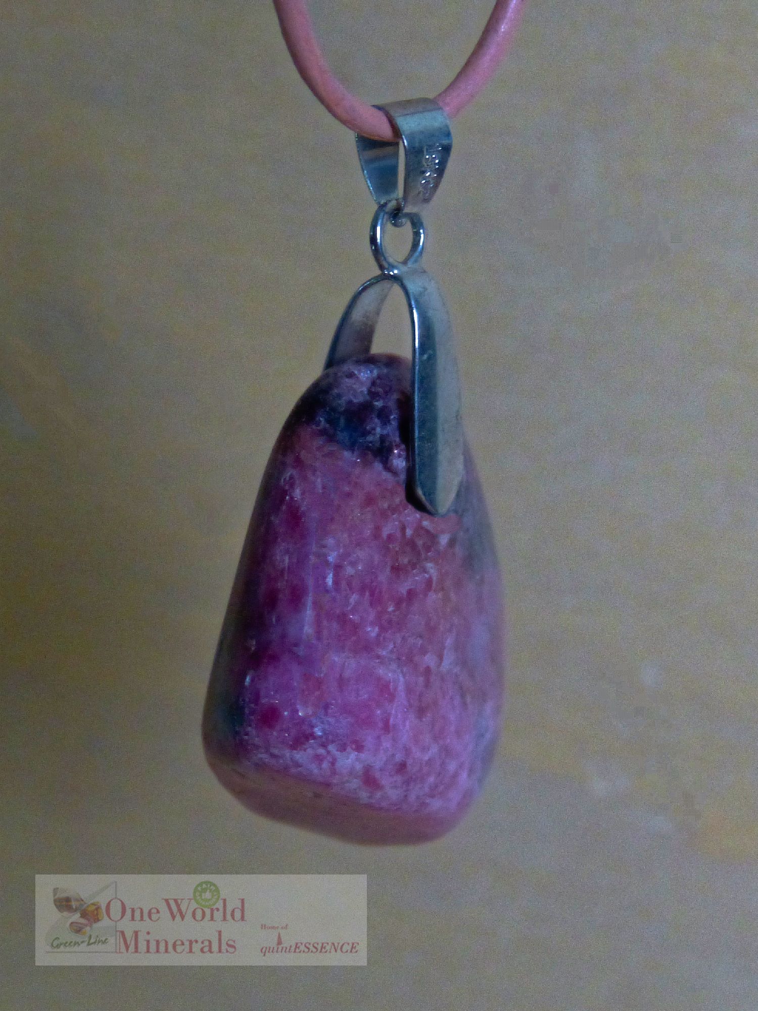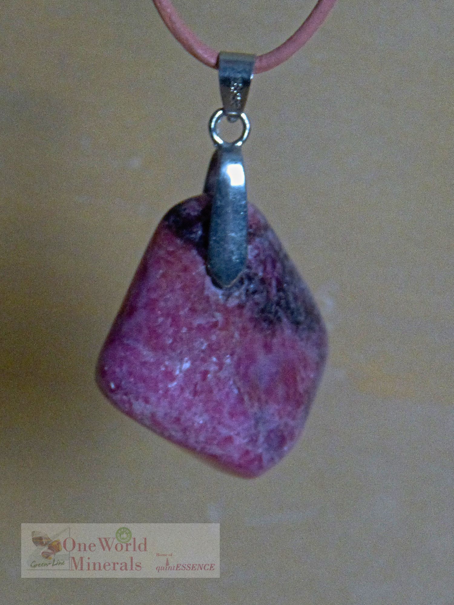 Rhodonit aus Madagascar, frontgebohrt, mit Silberclip.