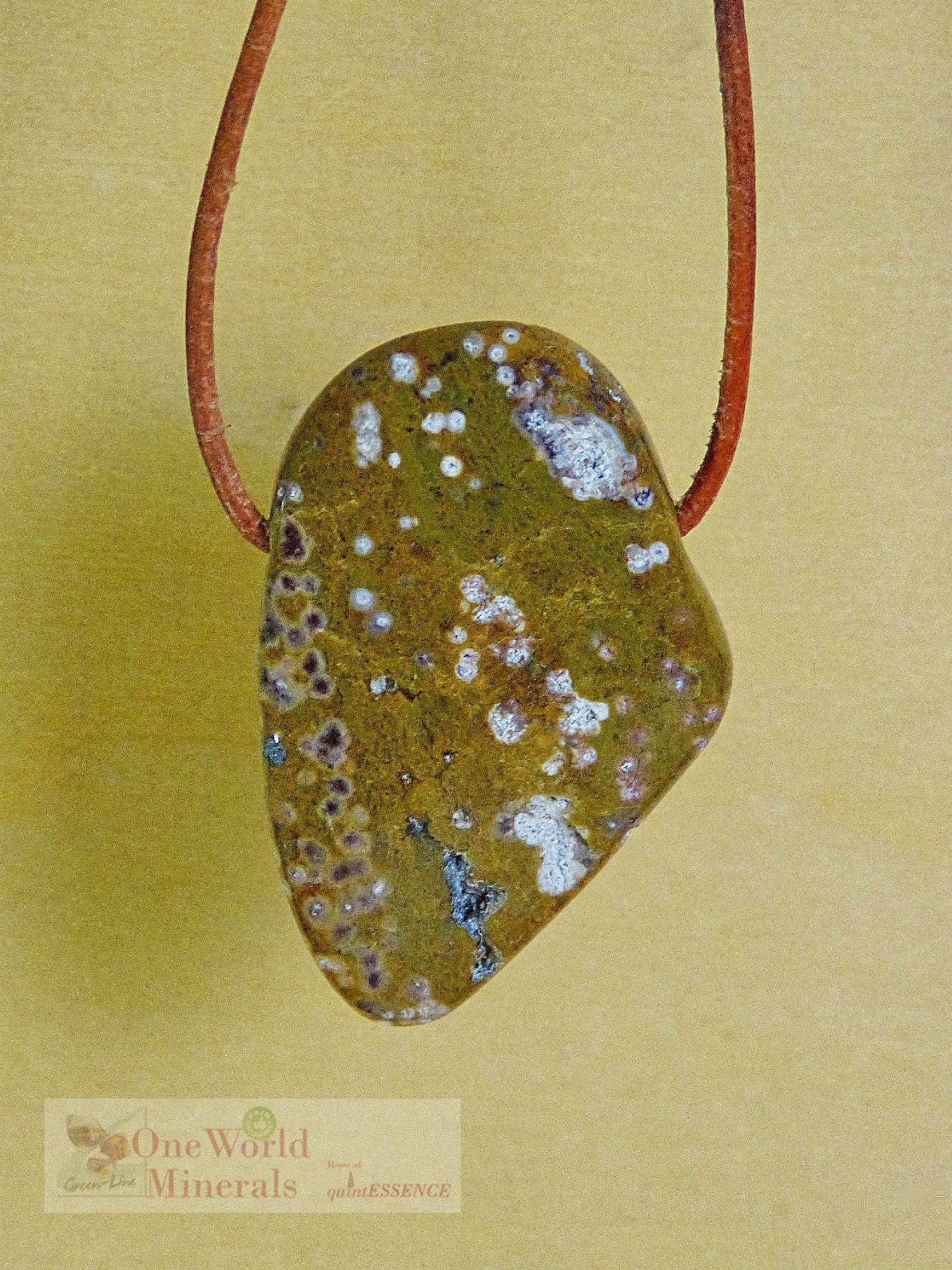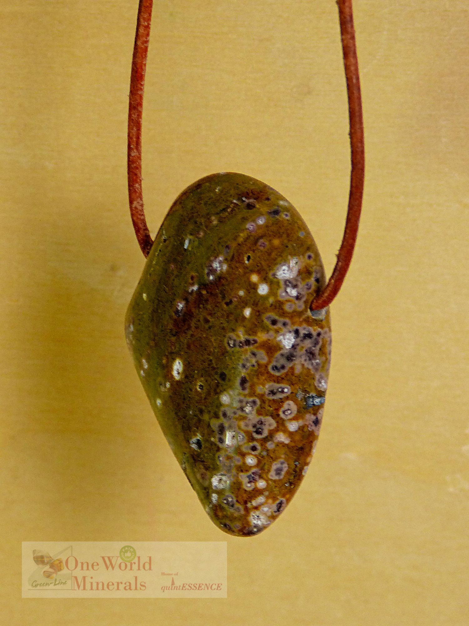 Ein flacher Poppy Jasper Anhänger aus Australien.