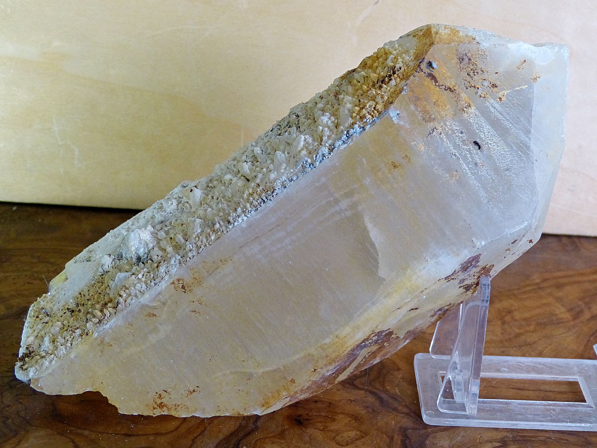 Die Größe des Bergkristalls beträgt in etwa 21x9x9cm, er ist ca. 1,6kg schwer.