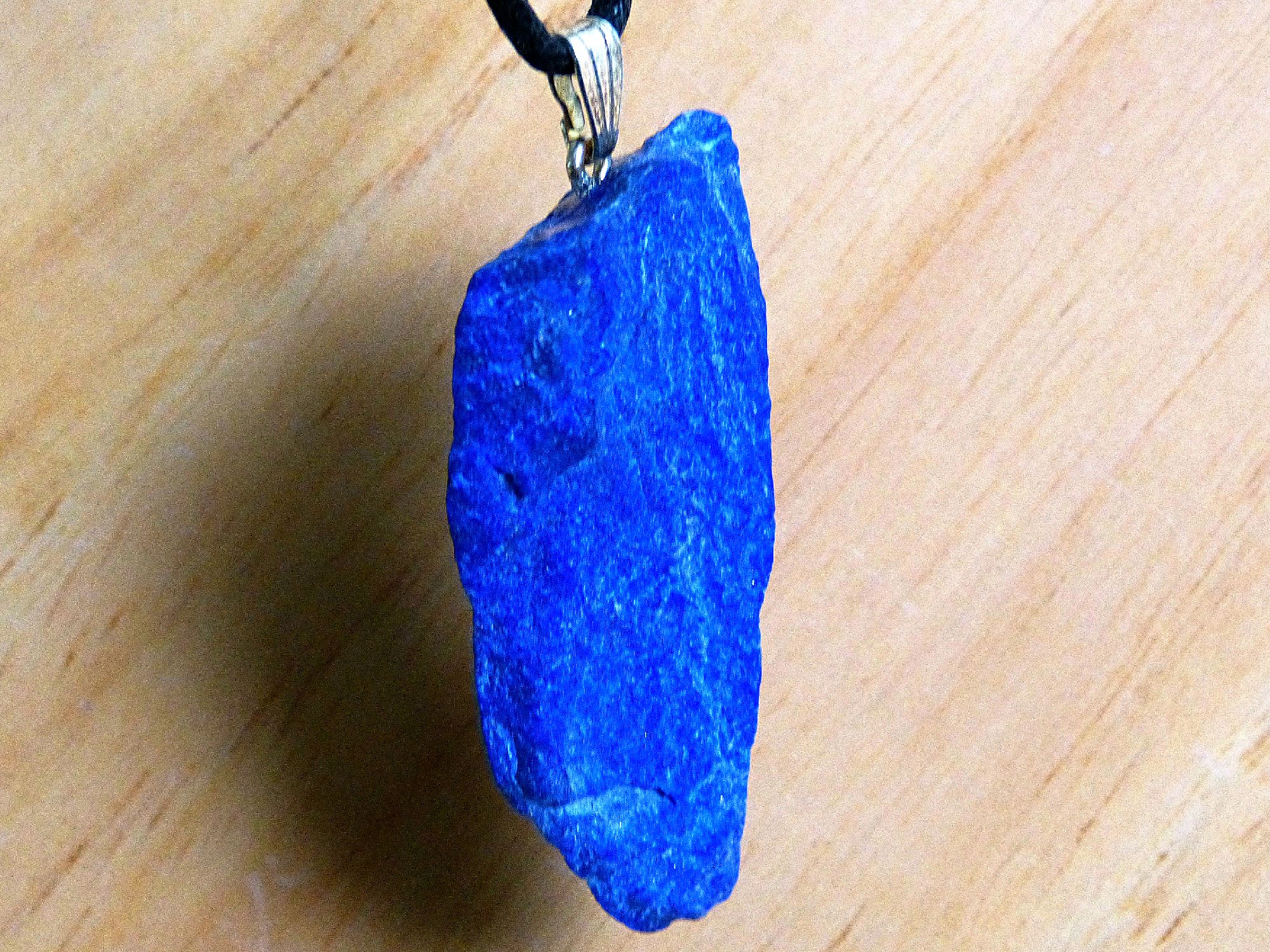 Ausgesuchter Lapislazuli-Schmuckanhänger mit Silberöse und schöner blauer Farbe.